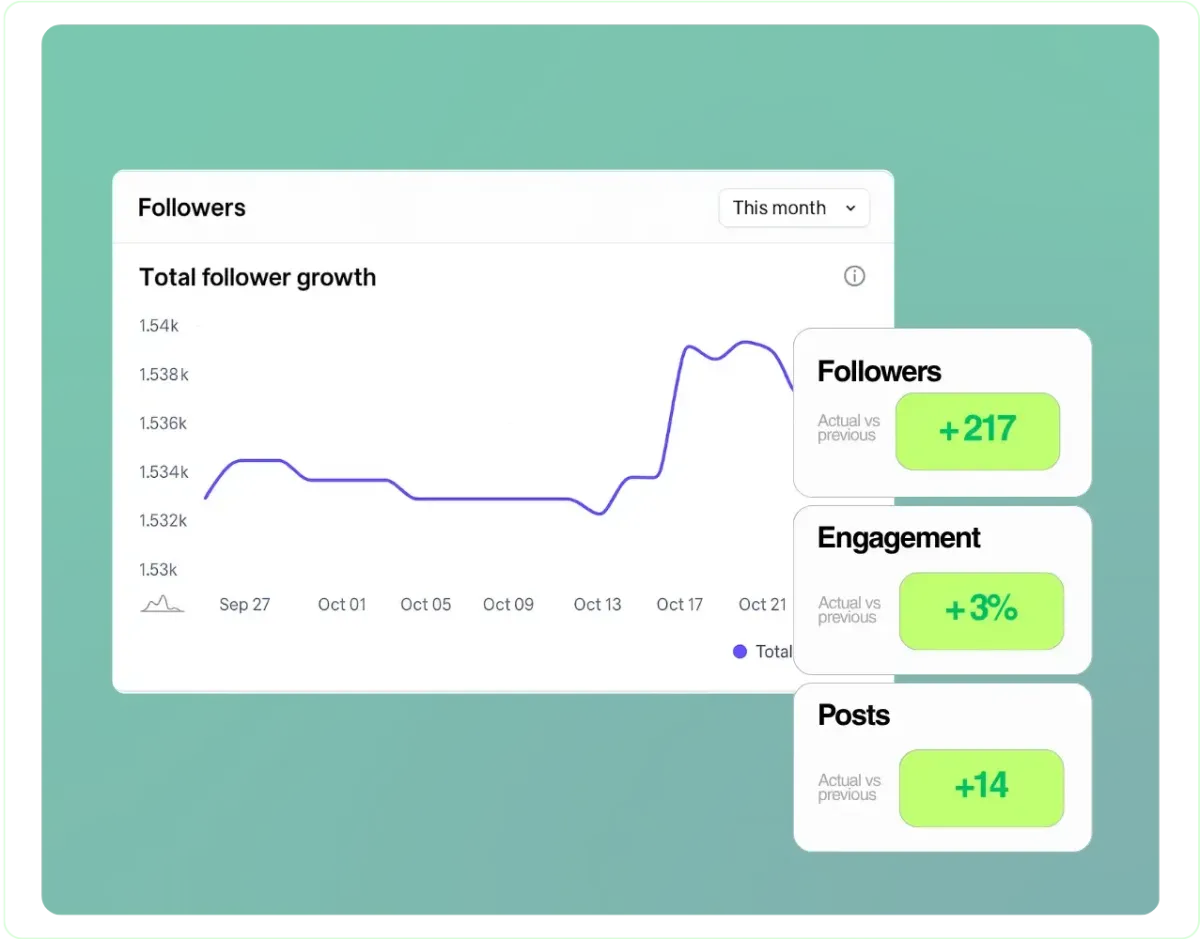 You get a real-time dashboard that gives you clarity and context. Love It Baby! analyzes performance across all your accounts and continuously adapts your content strategy, improving results automatically, with zero effort on your part.